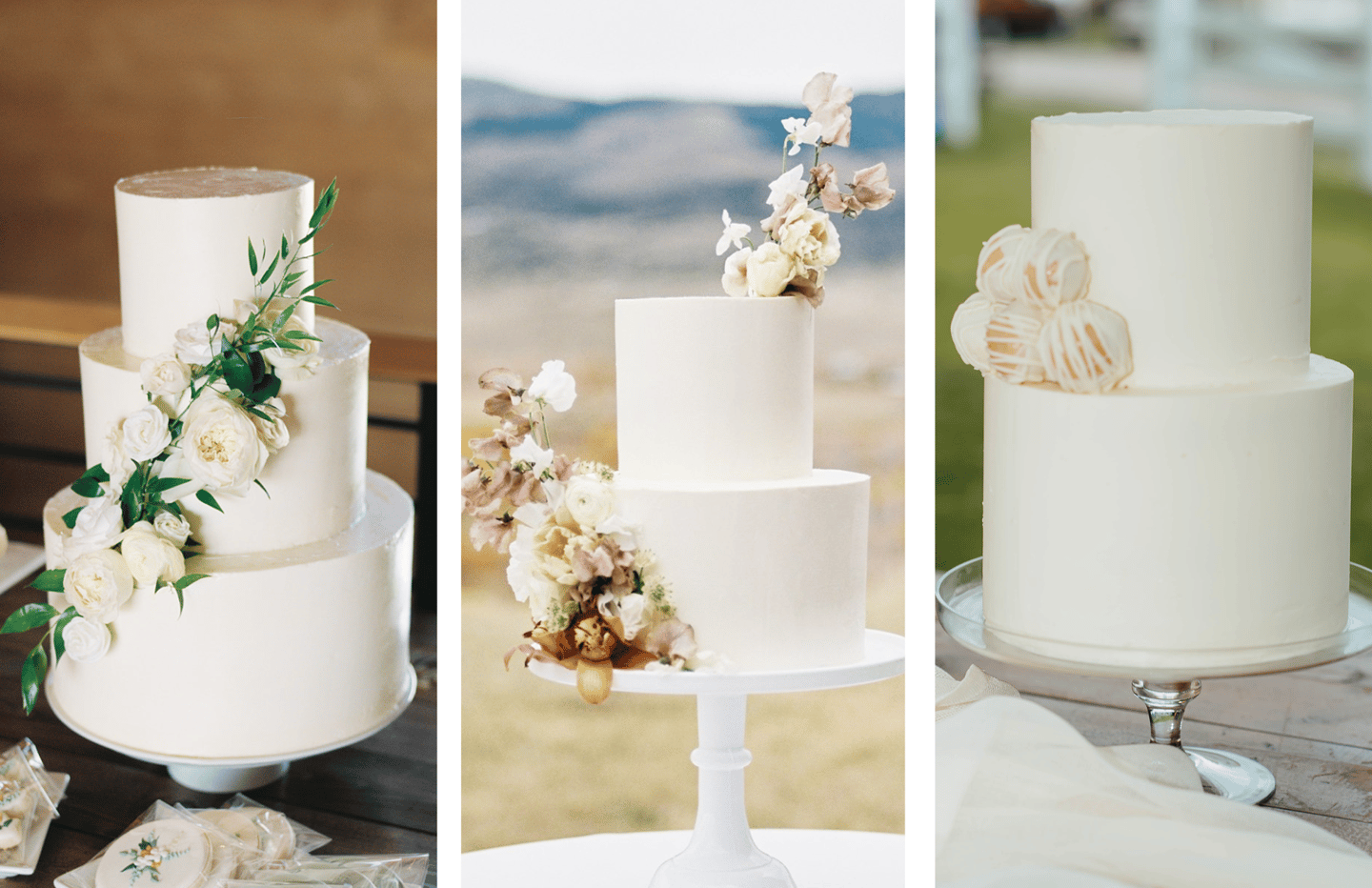 White wedding cakes are classic and timeless. In fact, some of our favorite designs embrace the beauty and simplicity of a white color palette! Here, we have gathered some design inspiration to show just how stunning white wedding cakes can be.