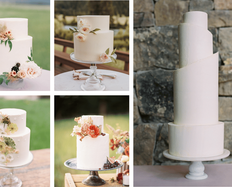 No matter the theme or season, a classic white wedding cake remains a timeless choice that will never go out of style. Its elegance lies in its simplicity, allowing for endless opportunities to personalize and tailor the design to reflect your unique story. Whether you’re planning a grand ballroom wedding or an intimate garden ceremony, a white wedding cake will always feel right at home. We hope that these examples inspire you to design your own classic wedding cake!