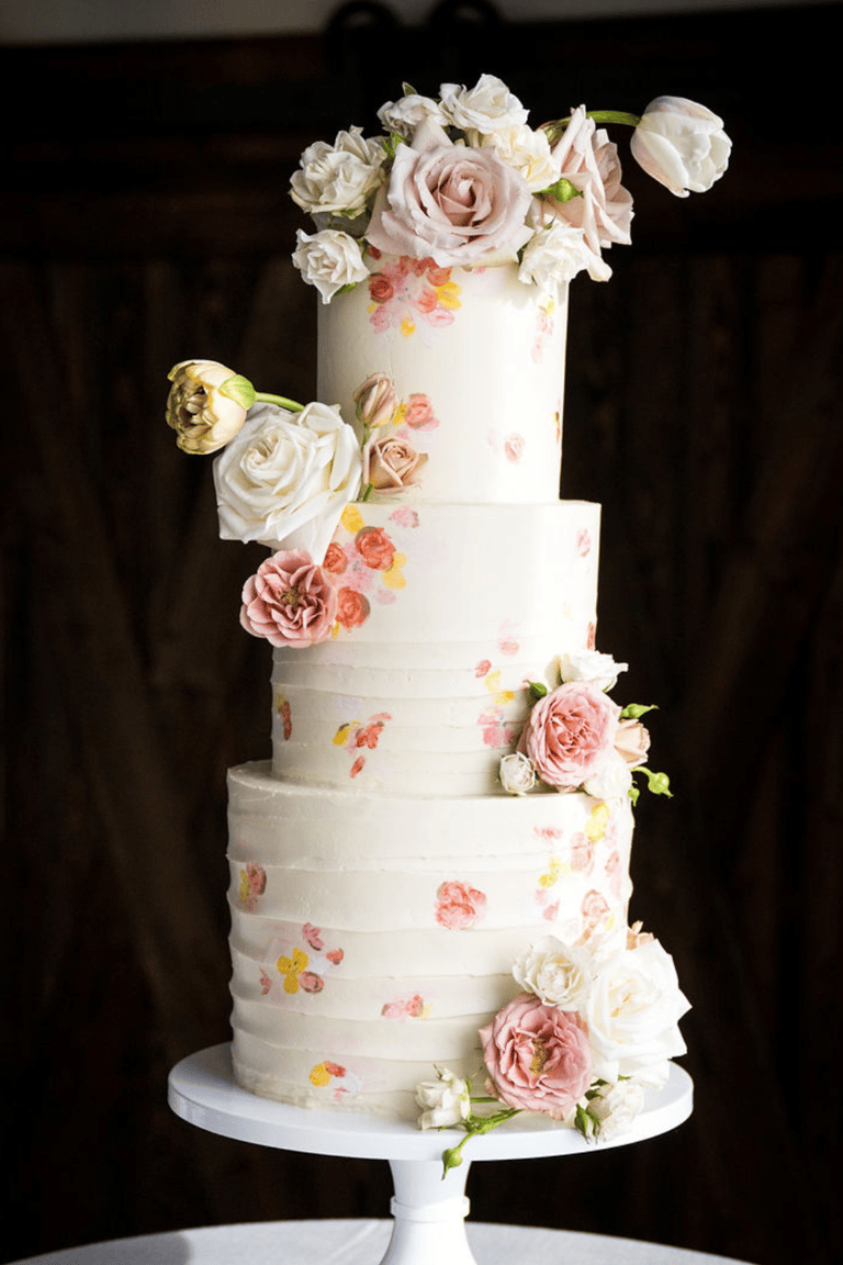 Flowers play a huge role in wedding decor, and they can be a wonderful source of inspiration for your cake design. Matching the cake’s floral decorations with your bouquet or centerpieces creates a cohesive look. We love working with florals, both fresh and sugar-crafted or hand-painted, to add that extra touch of elegance and romance to your cake.