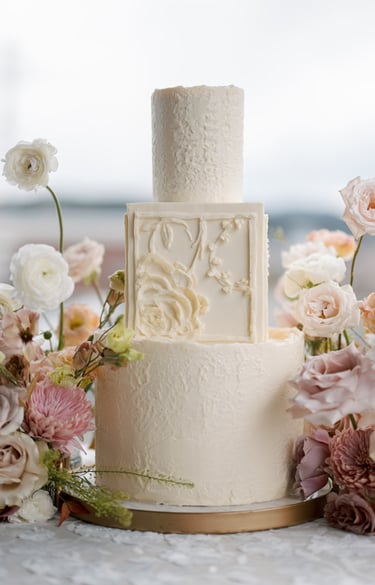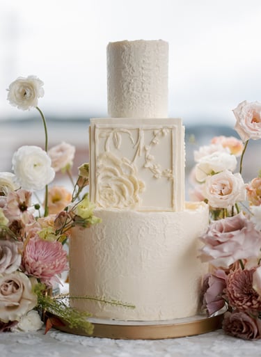 Two-tier wedding cakes are ideal for intimate weddings, but still offer that classic, tiered look. They provide height and elegance without overwhelming smaller venues or guest lists. These cakes are perfect for weddings with a smaller guest count, elopements with a reception, or celebrations that include a dessert bar where cake isn’t the only sweet option.