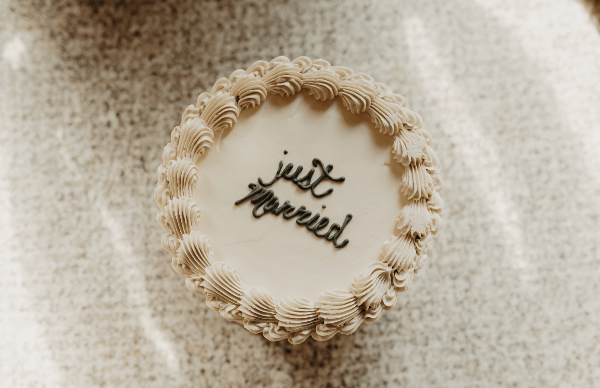 This charming vintage wedding cake is a beautiful nod to classic design with its soft, creamy white buttercream and intricate piped detailing. Delicate swirls and shell borders adorn the edges in perfect symmetry, creating a look that feels both timeless and lovingly handcrafted. The elegant “just married” script topper adds a sweet, celebratory touch, while the petite size makes it ideal for an intimate wedding or as a romantic display alongside a larger dessert spread. With its nostalgic flair and graceful simplicity, this cake is a delightful centerpiece for couples who adore vintage elegance.